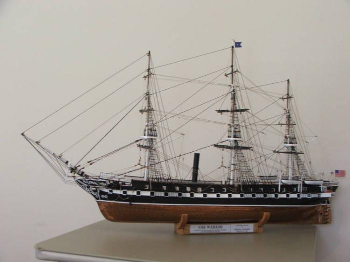 The USS Wabash model at1/96 scale made from basswood took 11 months to design and build and was designed from National Archive drawings. It's 48 inches long by 28 inches tall.