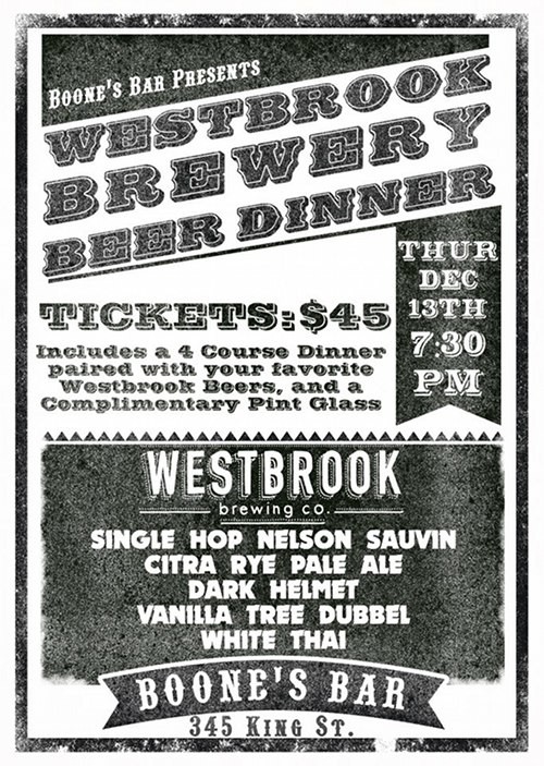 Westbrook beer dinner at Boone's Bar this evening