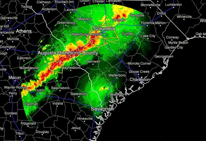 First reporting: The folks in the Midlands have been getting hammered early this morning by the approaching cold front, and now heavy rain is due to hit Charleston late this morning and early this afternoon.