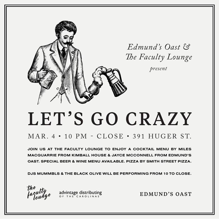 The Faculty Lounge and Edmund’s Oast Present “Let’s Go Crazy” Party on Saturday