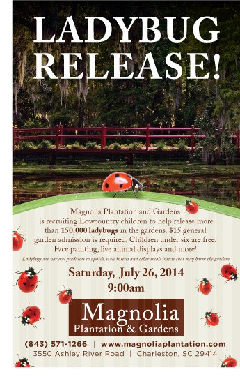 Ladybug Release at Magnolia Plantation & Gardens on July 26th