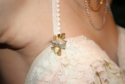 You'd miss the delicate bumblebee detail from the runway. Here's a look up close.