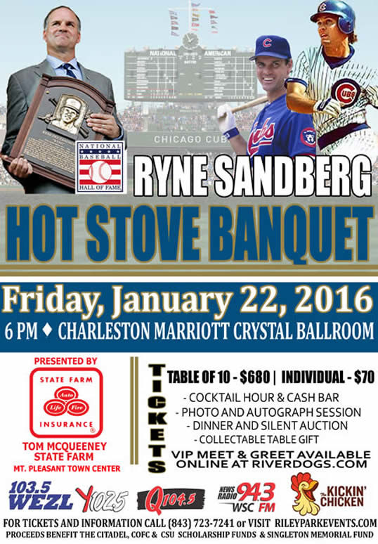 Riverdogs’ 2016Hot Stove Banquet to feature Hall of Famer Ryne Sandberg