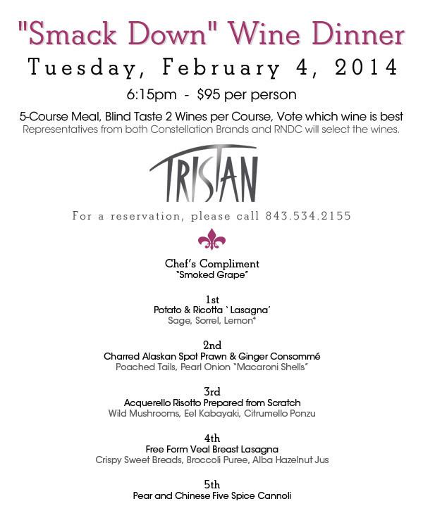 “Smack Down” Wine Dinner at Tristan Tomorrow