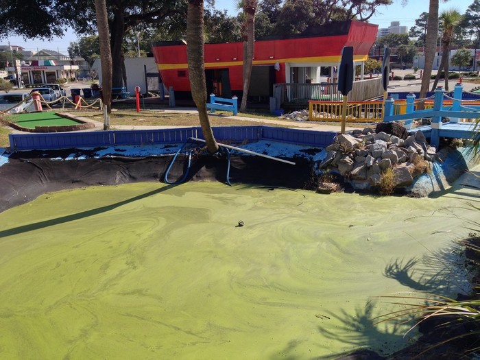 A Redditor who goes by the handle the-mp took to the local SubReddit to show off some pictures to his visit to Cap'n Cain which was closed down in 2006 but reopened recently and (I'm pretty sure) was the course featured in an episode of the first season of Myrtle Manor. The photos show just how run-down the course is and even had a sleeping employee behind the counter.