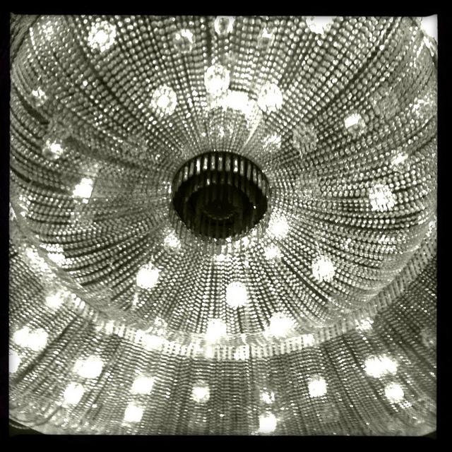 The chandler in the "grand ballroom" of the Charleston Place Hotel.