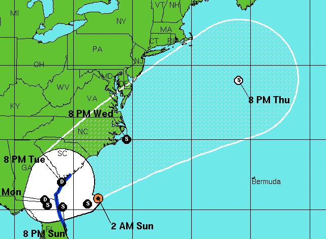 As the storm gets closer today winds will increase especially across the warning area. Winds or wind gusts of tropical storm strength should begin in the waters 20 to 60 nautical miles off the Georgia coast and the waters near off the South Carolina coast around daybreak and then spread southwestward reaching the warned areas from Edisto Beach south to the Altamaha Sound by early to mid afternoon. At this time only minor wind impacts are expected with some downed trees or tree limbs and isolated power outages possible during the height of the storm especially south of the Savannah River. Widespread wind damage is not anticipated at this time.