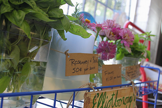 A blue rack placed against the front window is the new spot to find the freshest basil, rosemary, hot peppers, and Shi So in the Elliotborough neighborhood. What's even better are the prices. Rosemary is going for $.50 per branch, flowers for $1 a stem and hot peppers for $.20 a piece.