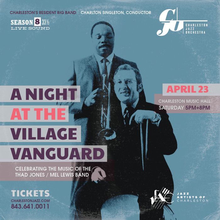 The Charleston Jazz Orchestra (CJO) presents A Night At The Village Vanguard, Celebrating the Music of the Thad Jones/Mel Lewis Band. The CJO continues their 2016 season with the music from the legendary Thad Jones and Mel Lewis. Both born in the 1920s, Thad Jones was an American jazz trumpeter, composer, bandleader and long time member of the Count Basie Orchestra. Mel Lewis was an American drummer, jazz musician, and bandleader. Their band, the Thad Jones/Mel Lewis Band, was formed around 1965. Among professional jazz musicians, this elite jazz orchestra is one of the most respected big bands of all time. During the height of their popularity, the band consisted of New York City’s crème de la crème of studio jazz musicians. The band won a Grammy Award in 1978 for their album Monday Night Live At The Village Vanguard. The CJO will be performing various pieces from this album along with other songs.