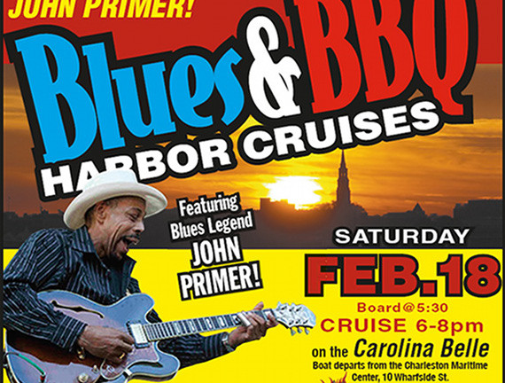 On Saturday, February 18th, from 6 to 8 p.m., enjoy a beautiful cruise of the Charleston harbor while enjoying a delicious Home Team BBQ buffet, cash bar, and live music from Shrimp City Slim and John Primer.