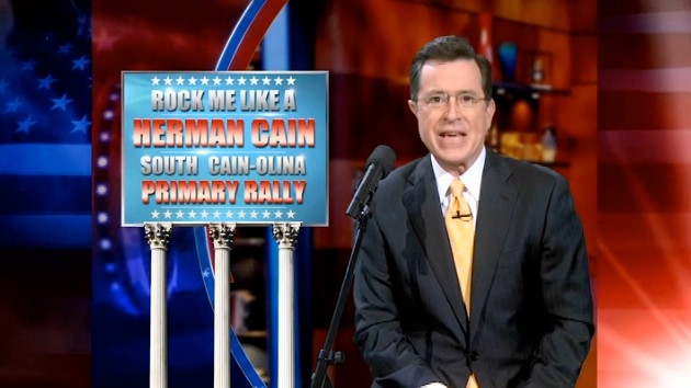 Colbert says, “Herman is the only former candidate who truly shares my values. It’s like our values were separated at birth. And our ethics are at least first cousins.”