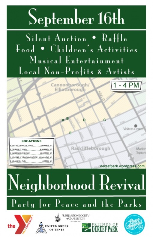 Hoping to save Dereef Park from development, many in downtown's Cannonborough Elliotborough neighborhood are pulling together to host the "Neighborhood Revival: A Party for Peace and the Parks" with history, food, music, and general fun.