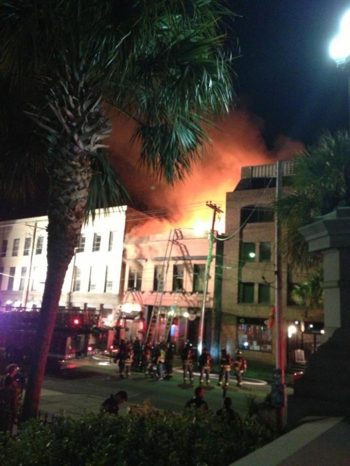 Charleston, SC (May 14, 2013): On 4/2/2013 at approximately 1:00 AM members from the Charleston, North Charleston, James Island, and Saint Andrews Fire Departments responded to a commercial structure fire at 213 East Bay Street. Members from Charleston County EMS and Charleston Police Department assisted with the response. The businesses impacted at this location included Light, Squeeze, and The Brick. The businesses on each side of 213 East Bay were impacted by smoke and water damage.
