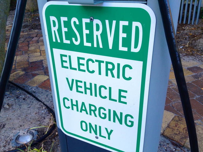 Two full size car spots were taken by golf carts (which is always a treat), but I noticed one spot open and thought it was my lucky day. It turns out however, that the open space was reserved for Electric Vehicles; which despite my parking woes, is pretty awesome.