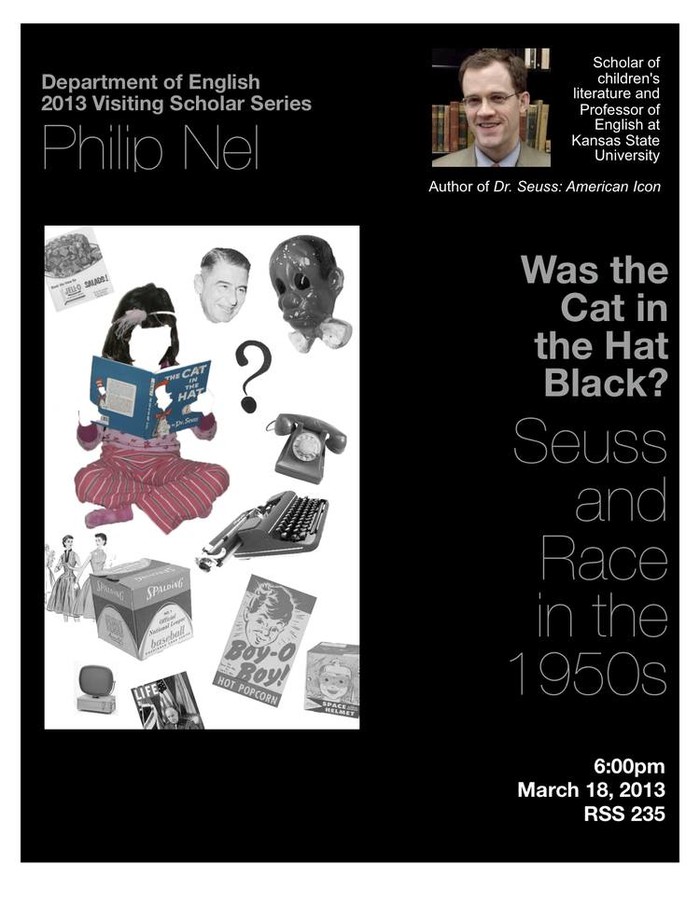"Was the Cat in the Hat Black? Seuss & Race in the 1950s." College of Charleston visiting scholar lecture. March 18, 2013. 6 pm, RSS Building, Room 235.