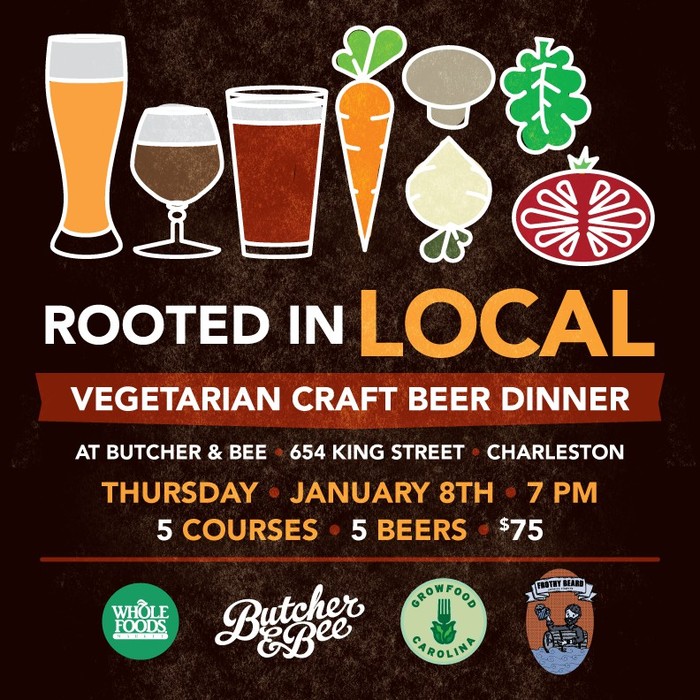 On Thursday, January 8th, three area businesses are joining forces to host the “Rooted in LOCAL” Vegetarian Craft Beer Dinner at Butcher & Bee.