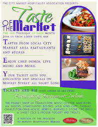 Join City Market Hospitality Association and Charleston Culinary Tours every third Thursday from 5:30pm-830pm for Taste of the Market at Palmetto Carriage Company Lot on Anson Street. Thursday, February 20, 2014 -Samples from market area restaurants. -Live music -Children’s area -Specials from participating businesses Peanut Shop, Noisy Oyster, Mad River, Burwell’s, AW Shucks, LB’s, Wild Wing, Crab House, Henry’s, and Charleston Culinary Tours (20% off) $10 with a portion of the proceeds to benefit Hospitality Heroes Free Children 10 and Under To purchase tickets, go to www.charlestonculinarytours.com OR at the event.