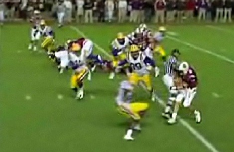 Watch the video and you'll notice Referee Wilbur Hackett Jr. collide with USC quarterback Stephen Garcia.